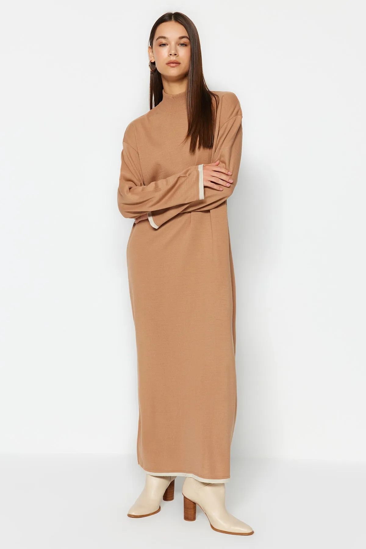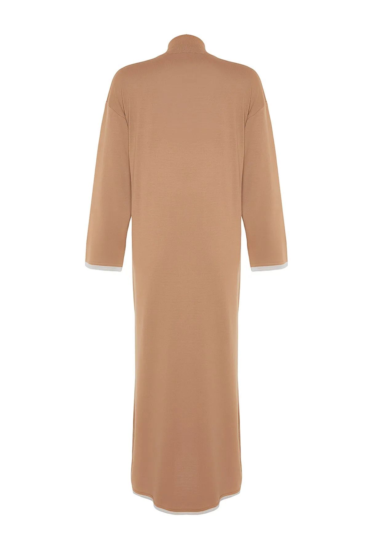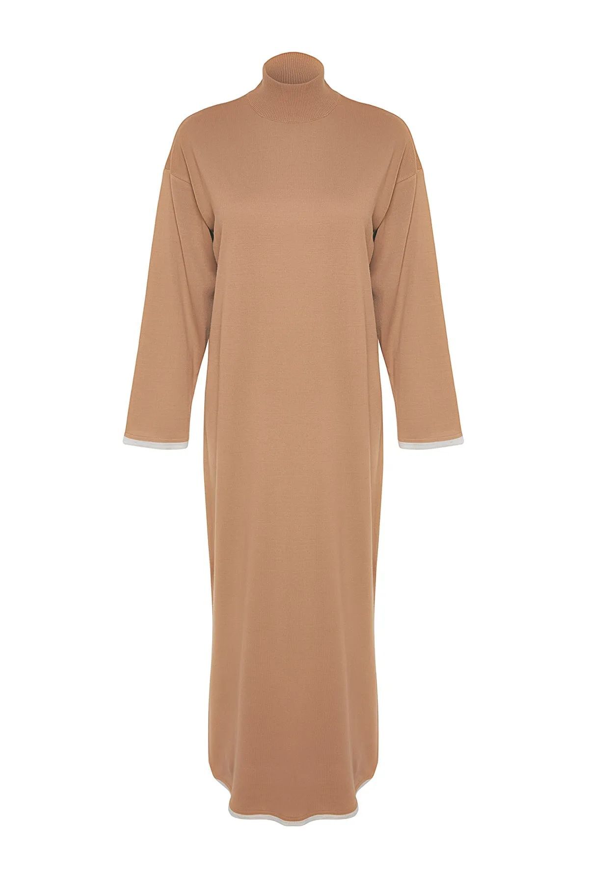 Бежевое длинное трикотажное платье повседневного кроя TCTAW24EB00032