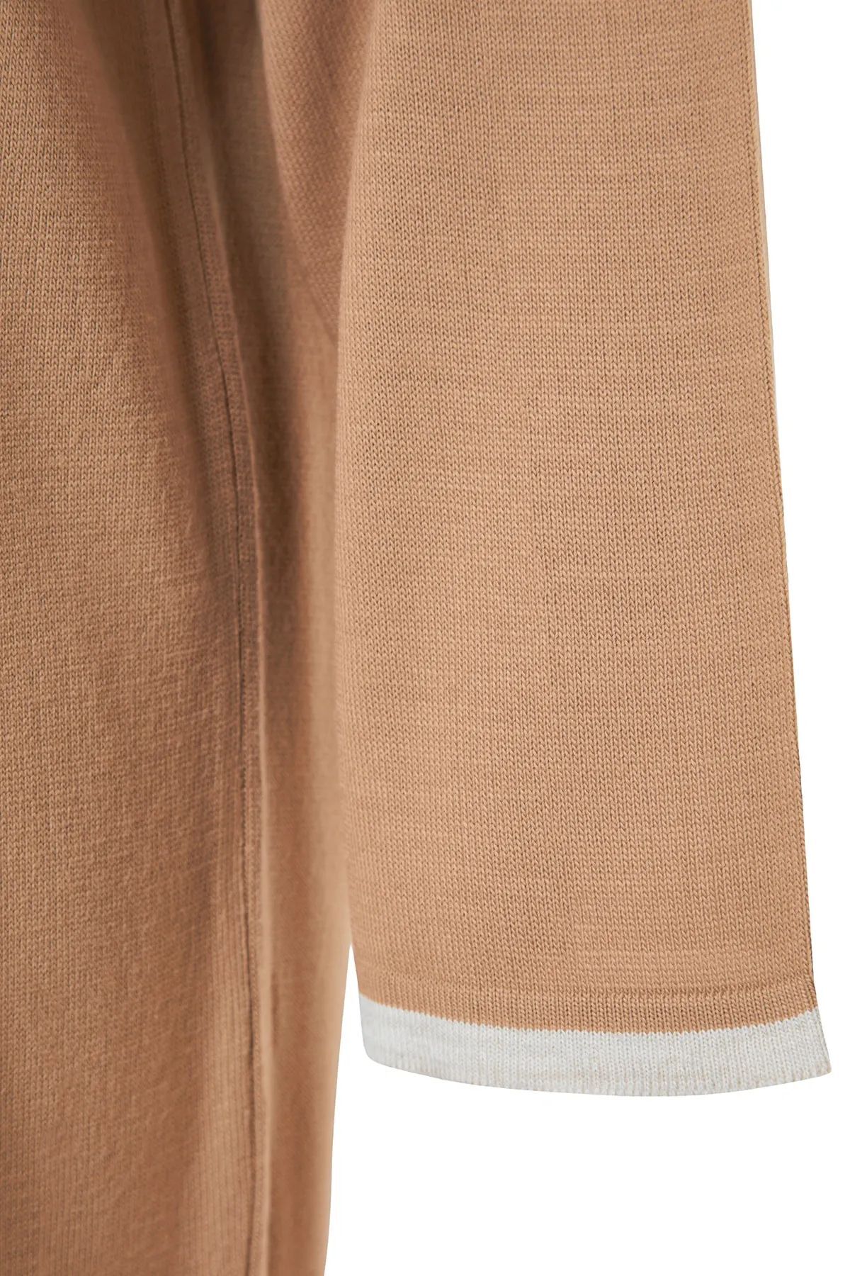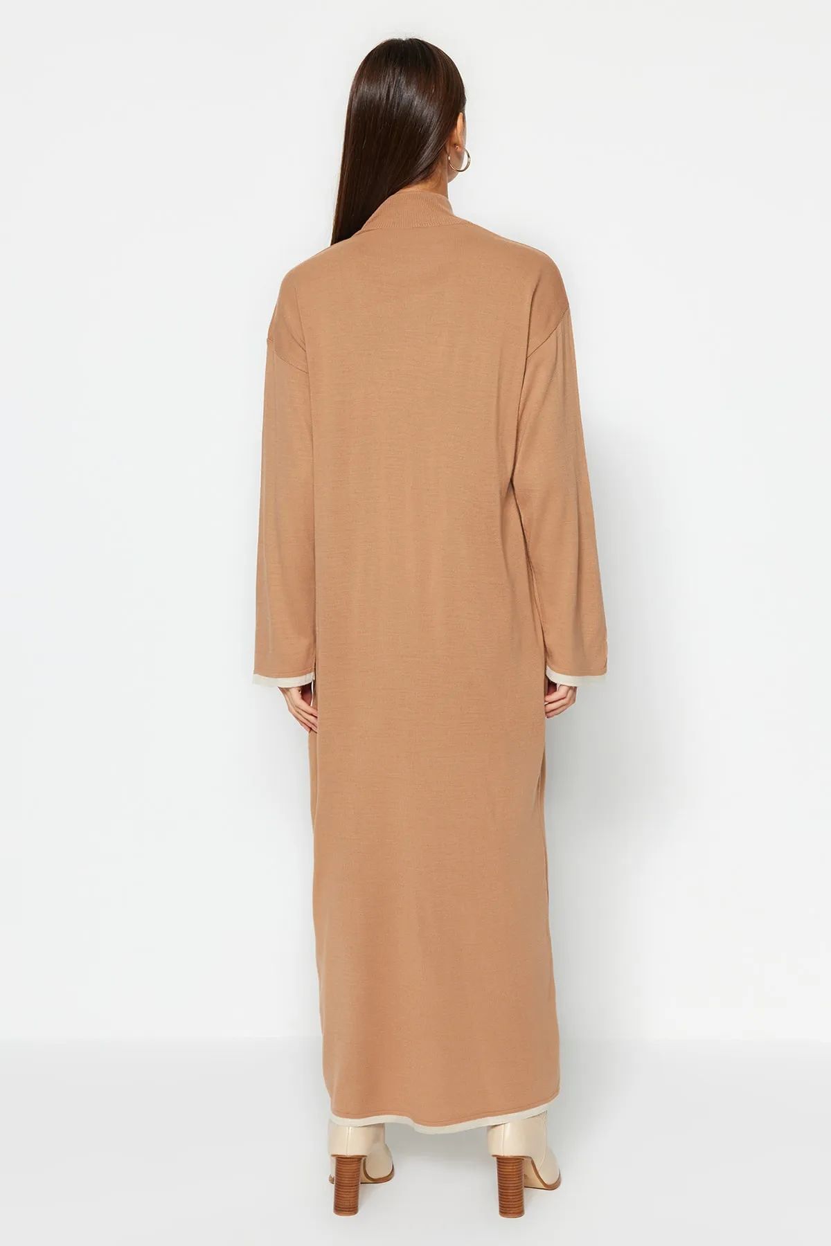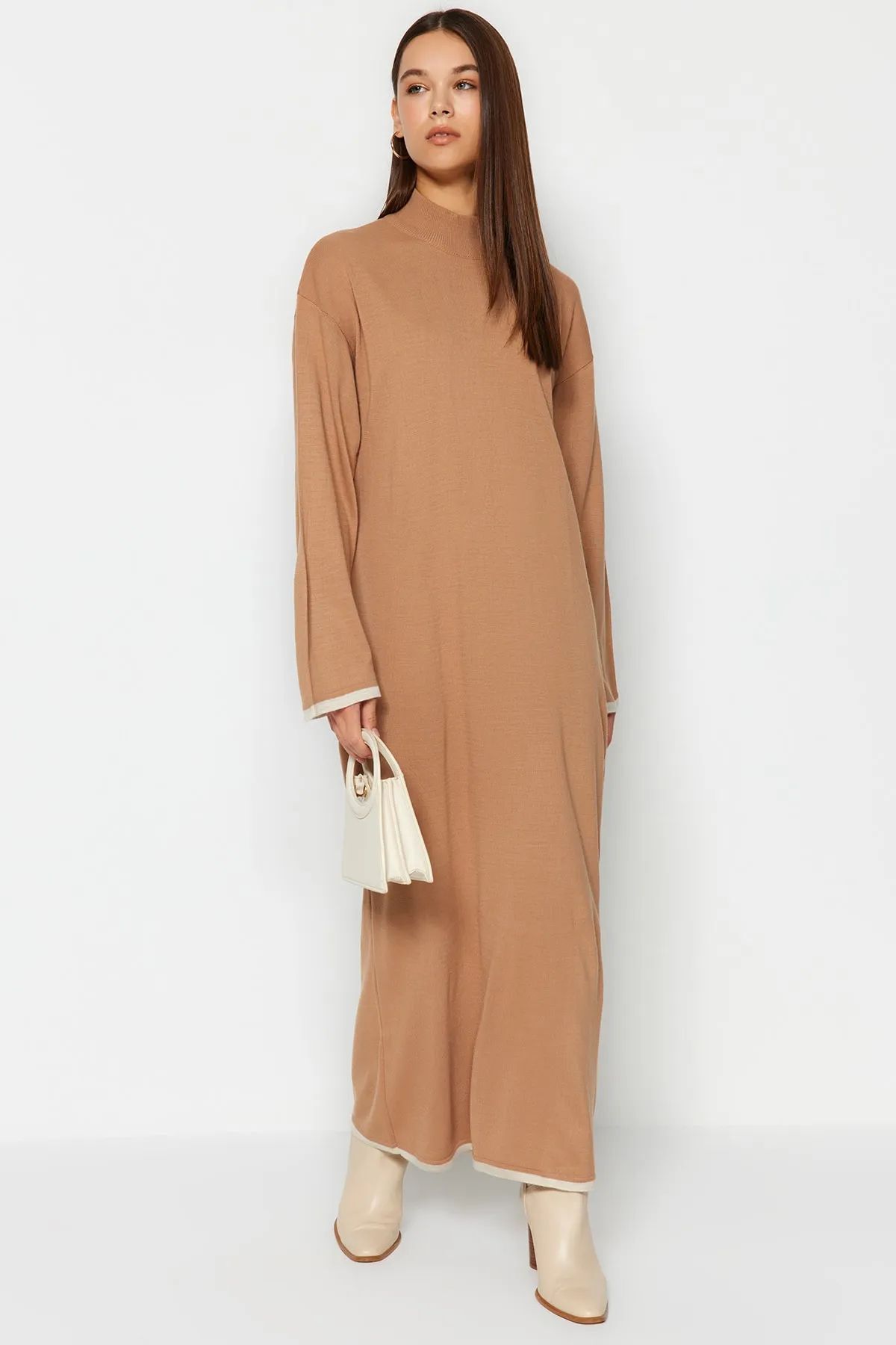 Бежевое длинное трикотажное платье повседневного кроя TCTAW24EB00032