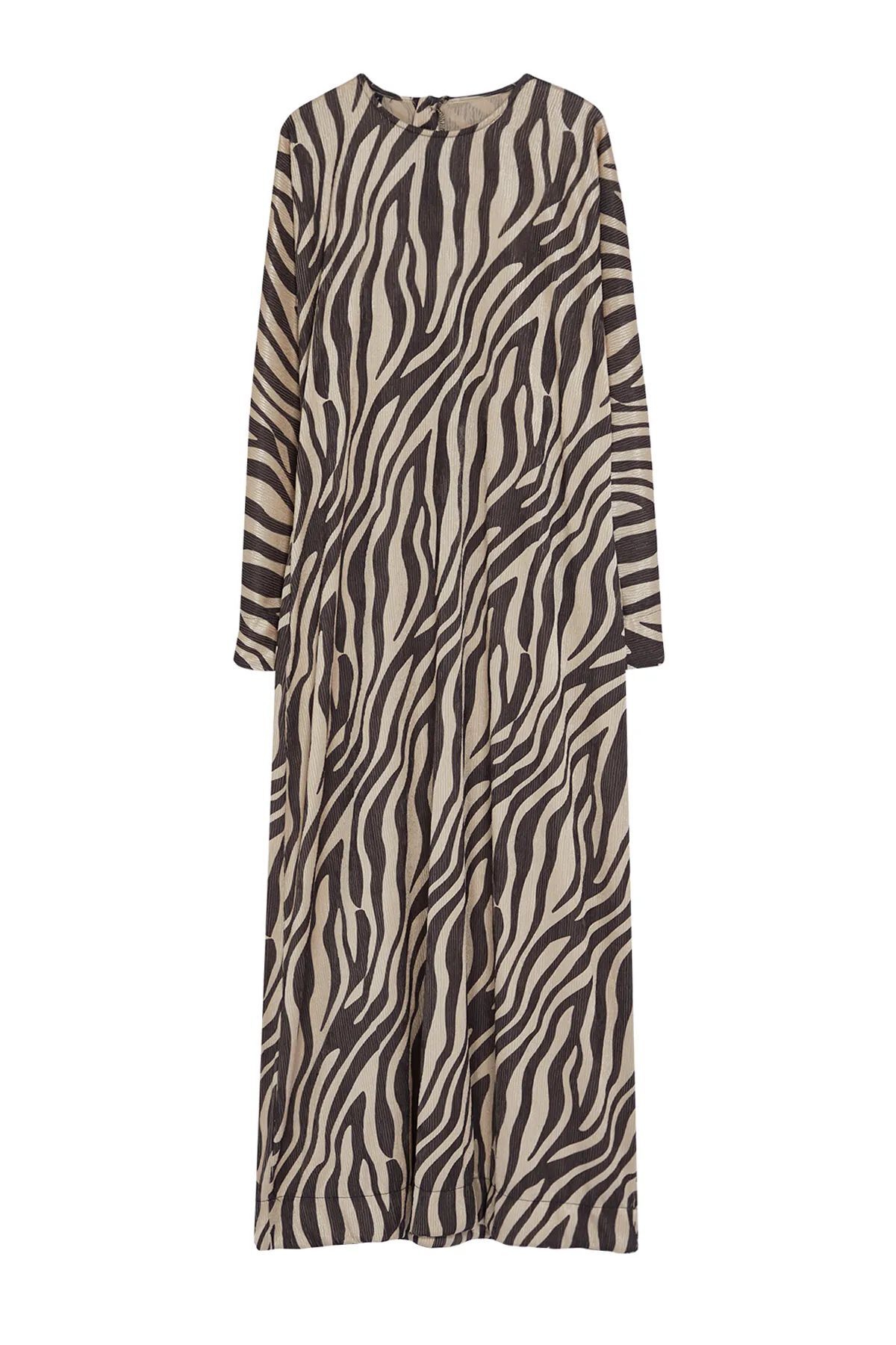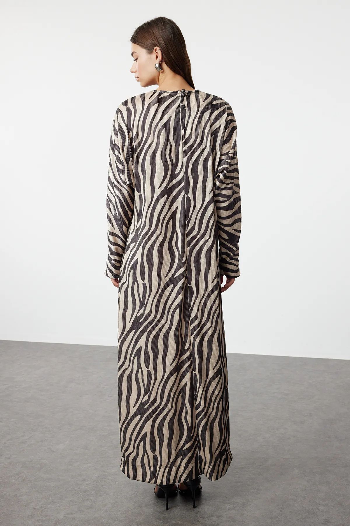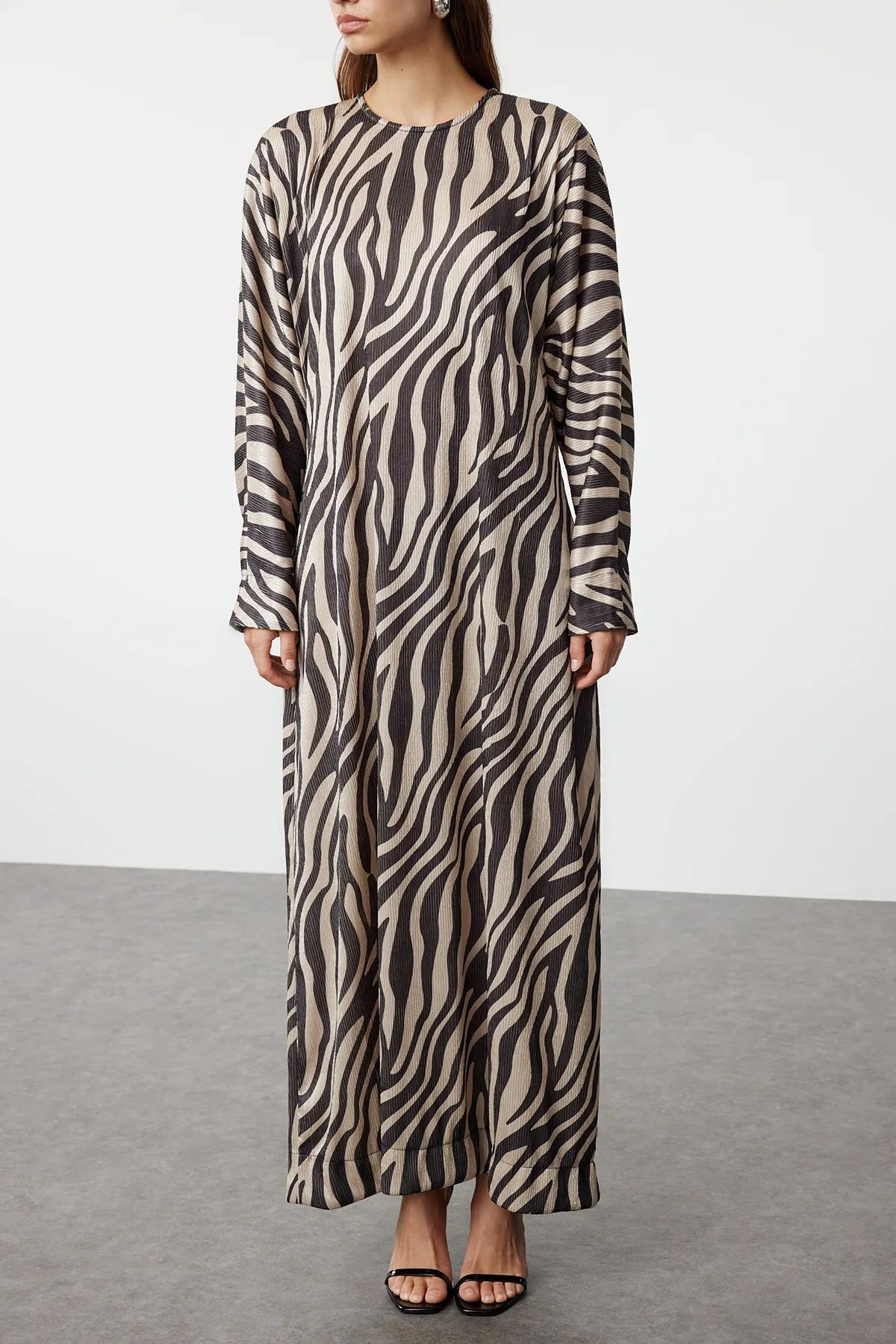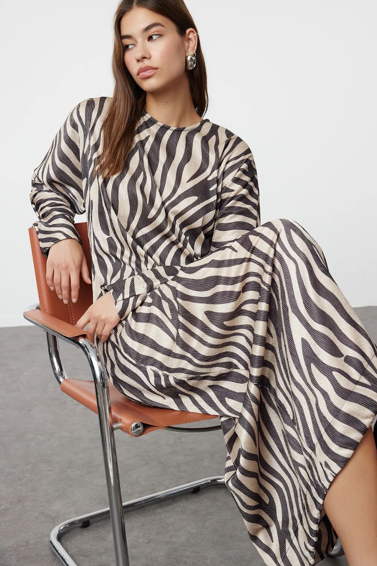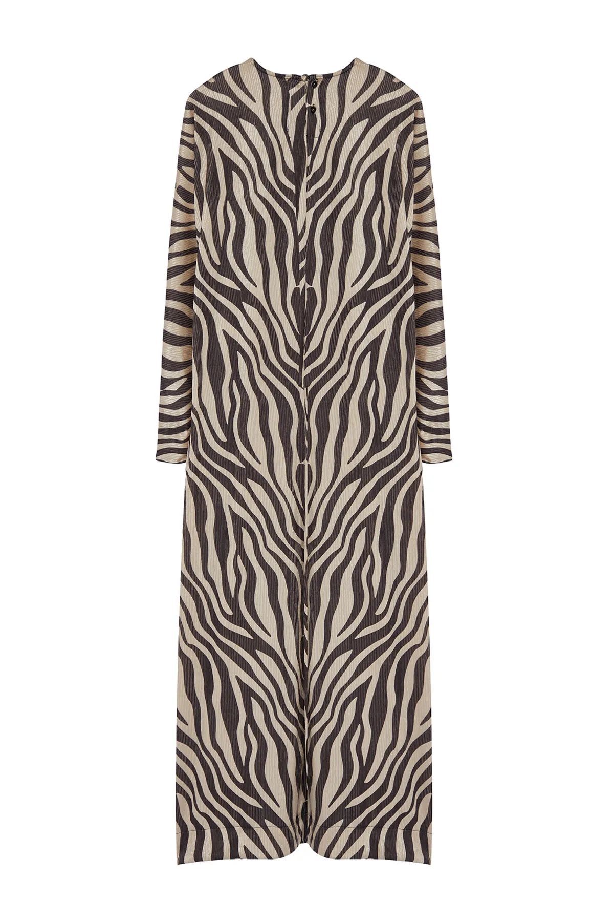 Бежевое трикотажное платье с рисунком зебры TCTSS24EB00284