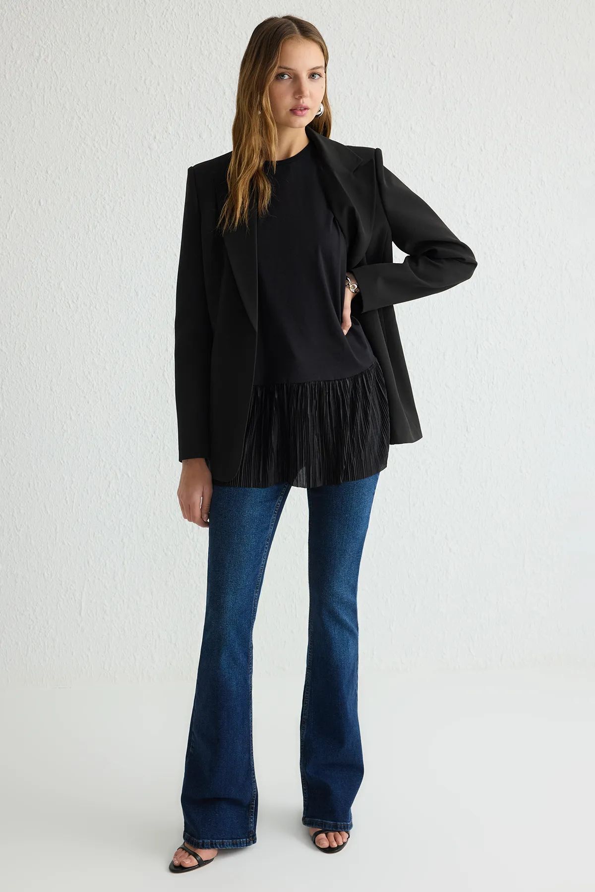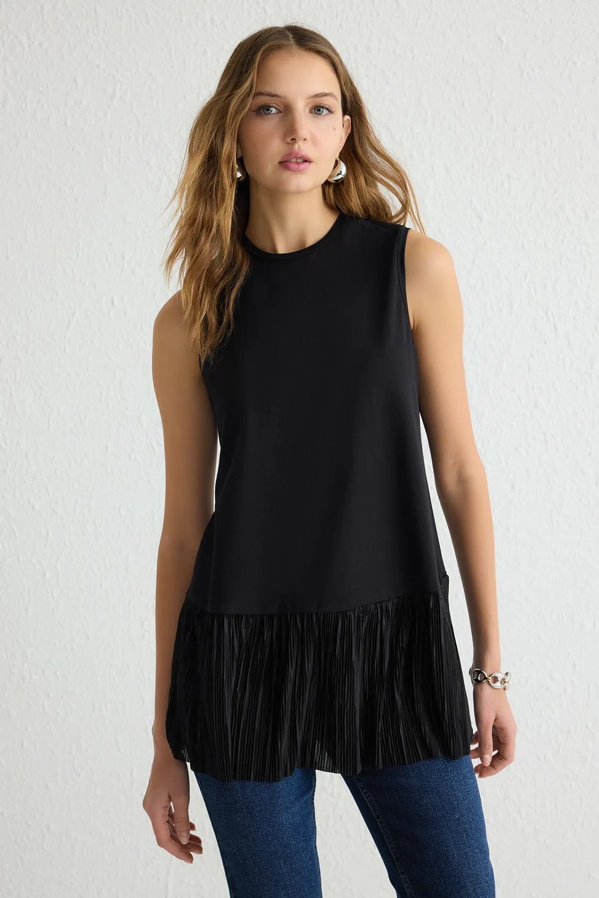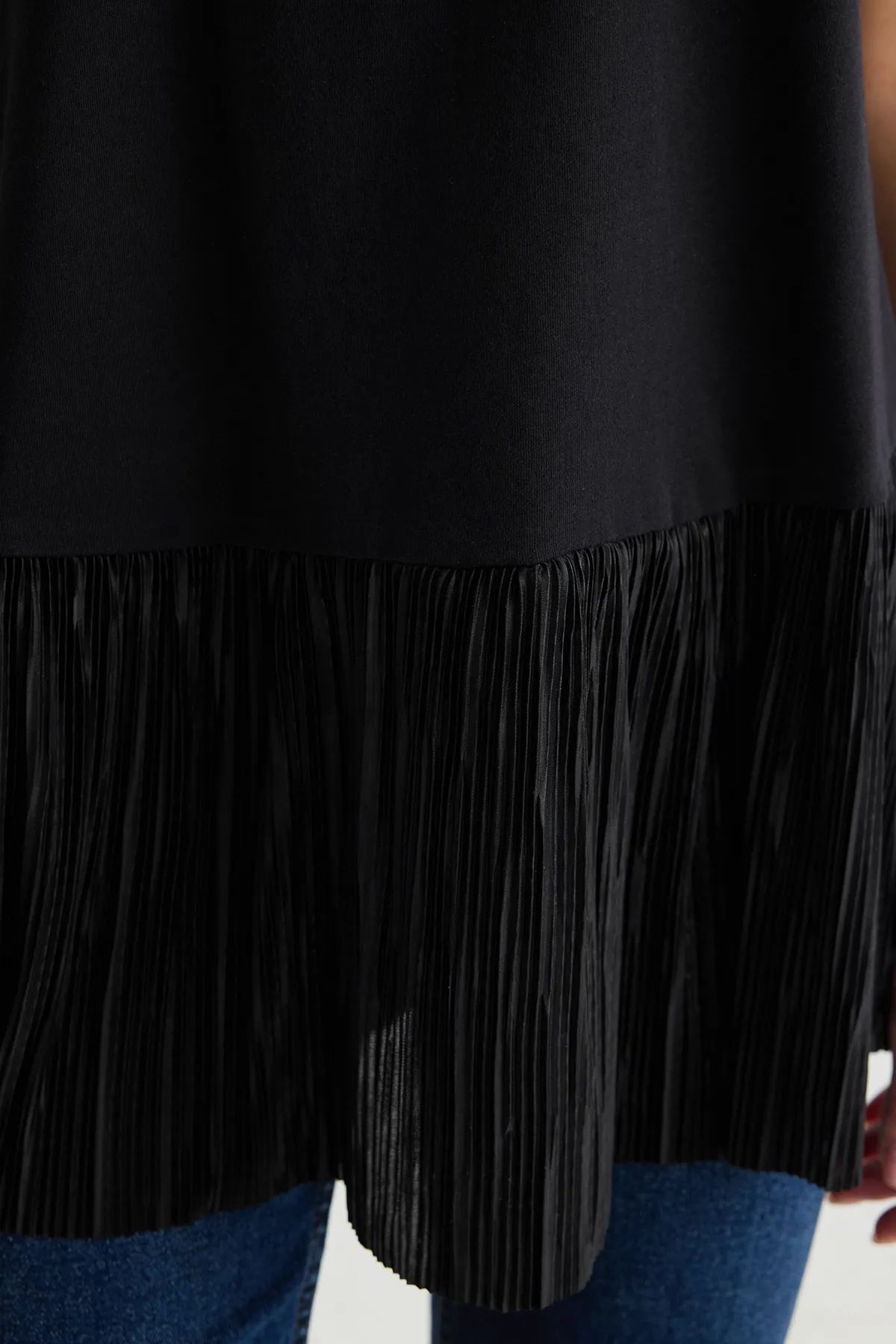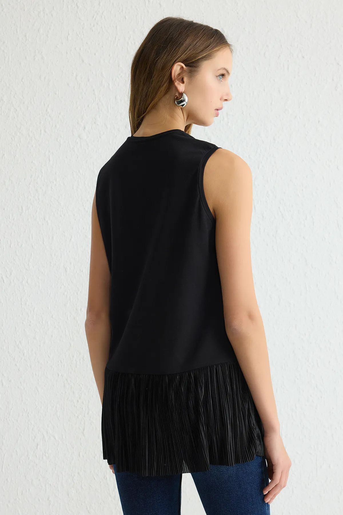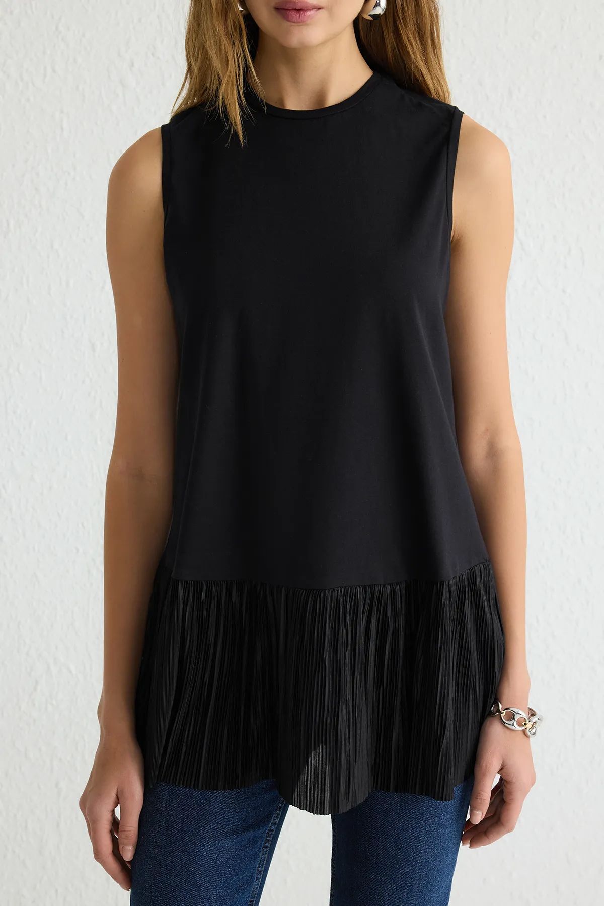 Черная юбка плиссированная Подробная трикотажная блузка без рукавов TCTSS25UK00005