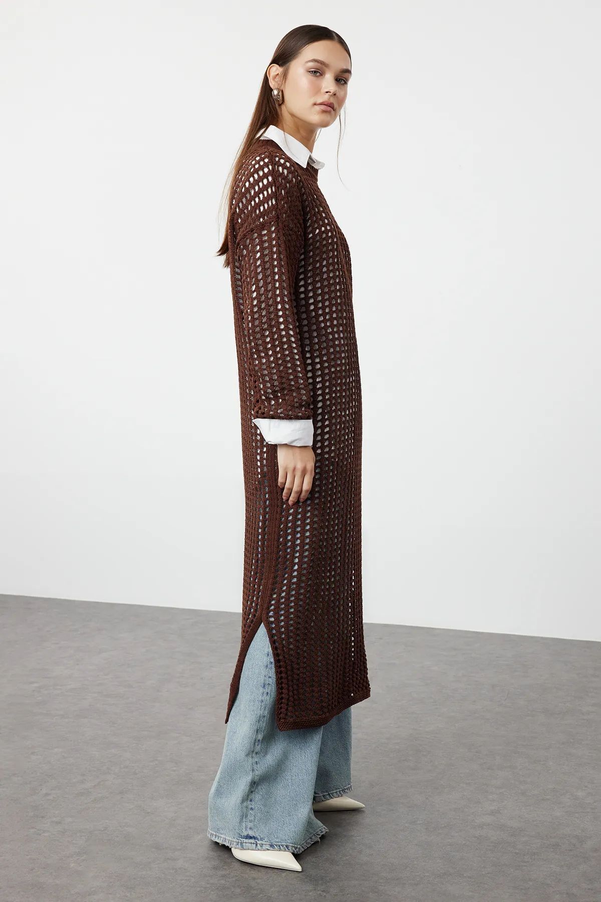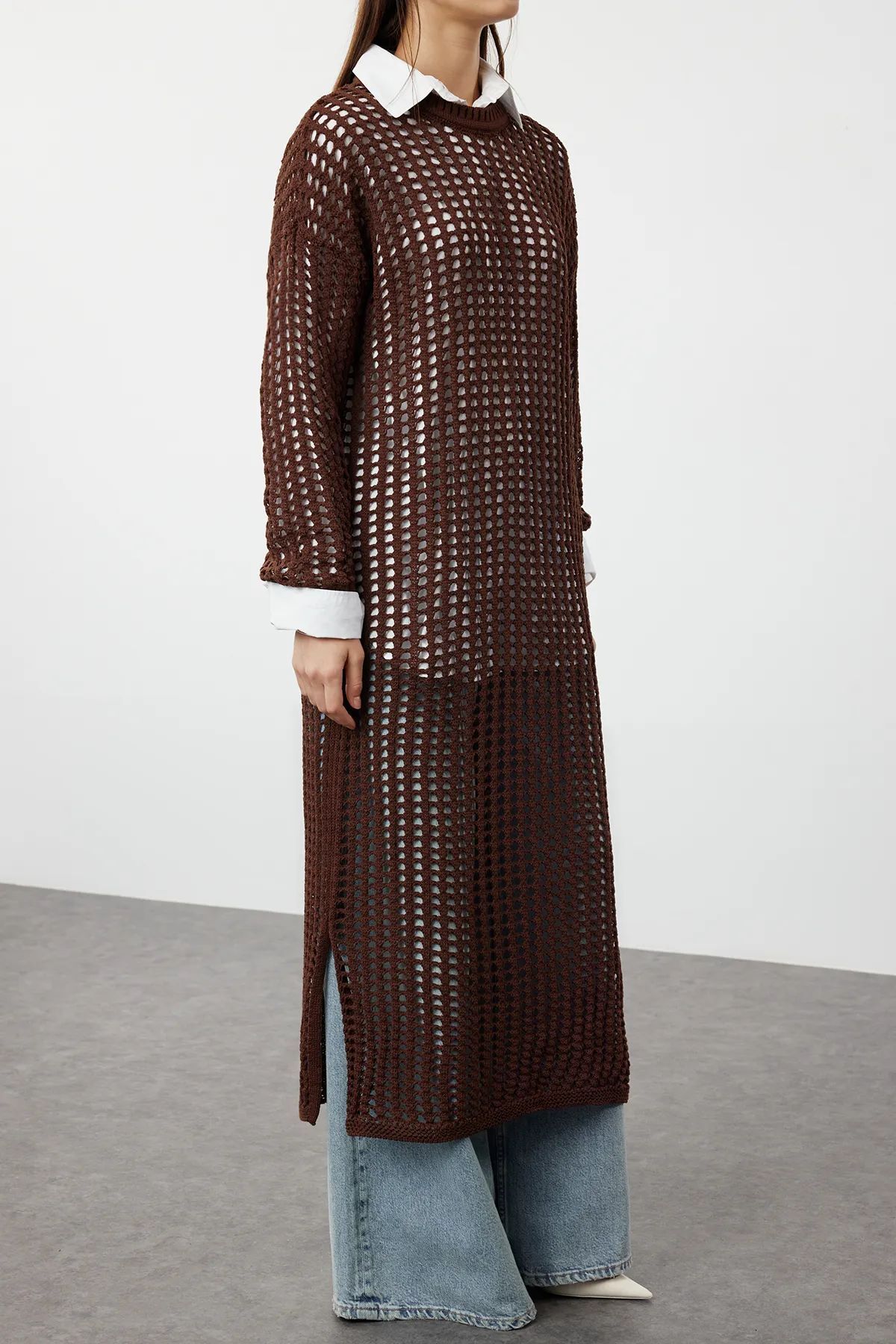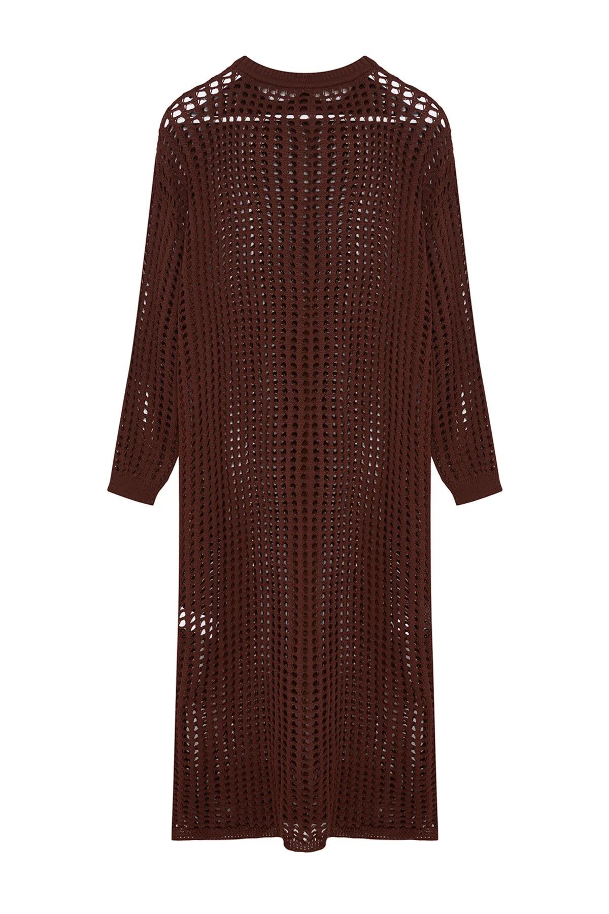 Коричневое ажурное/ажурное трикотажное платье TCTAW25EB00027