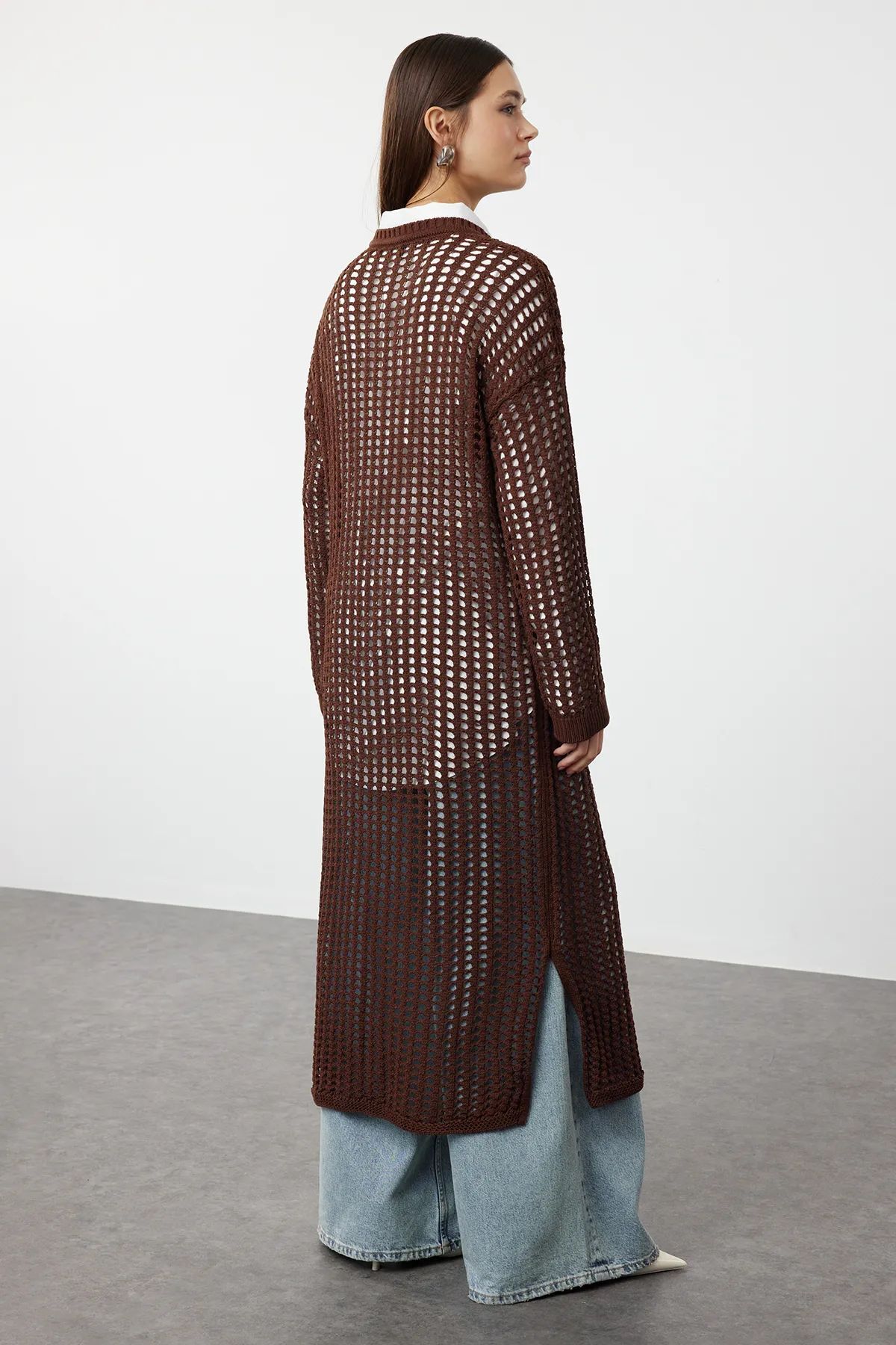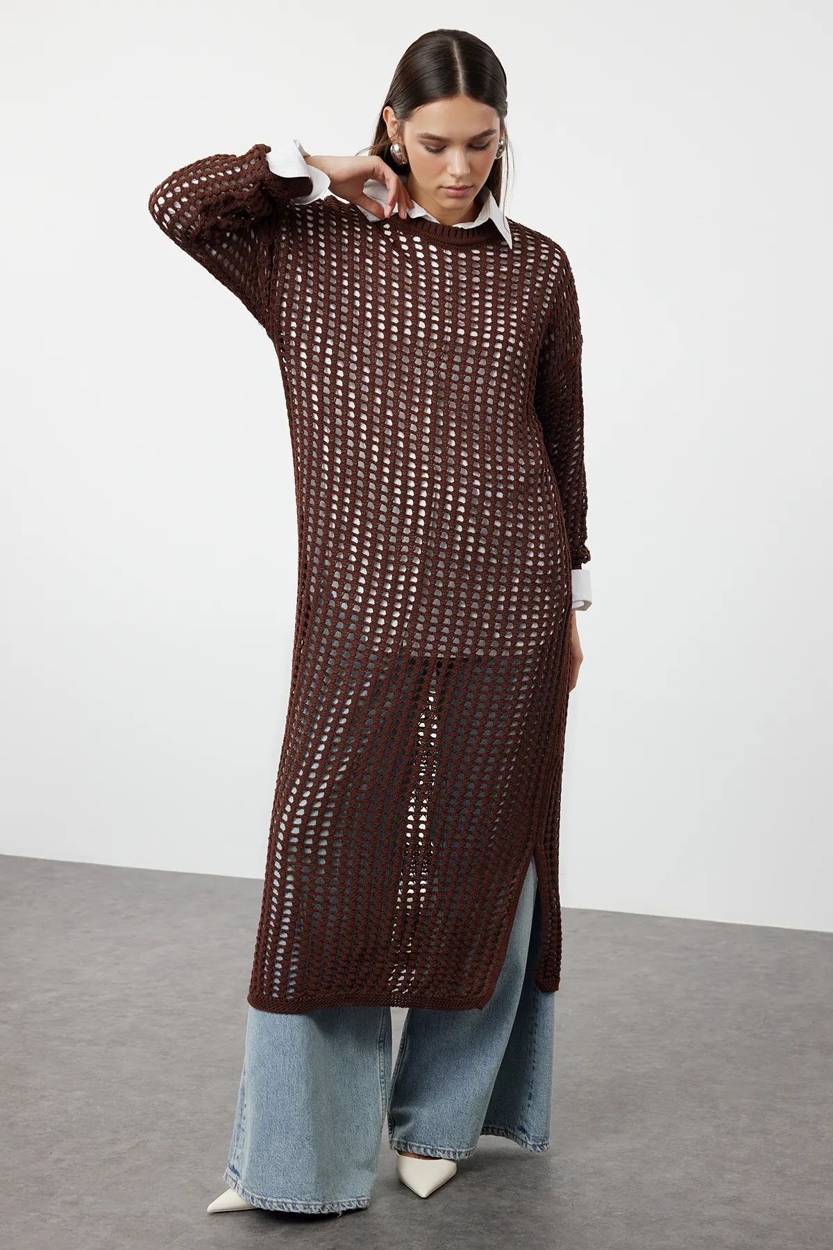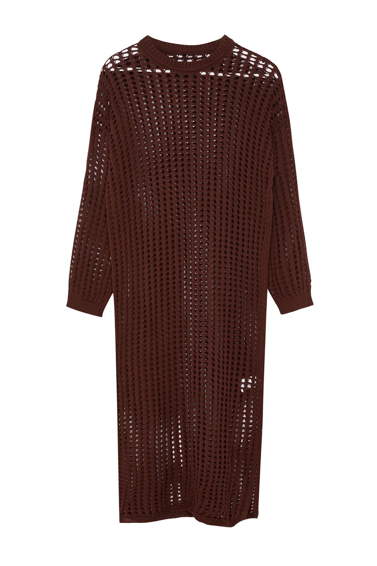 Коричневое ажурное/ажурное трикотажное платье TCTAW25EB00027