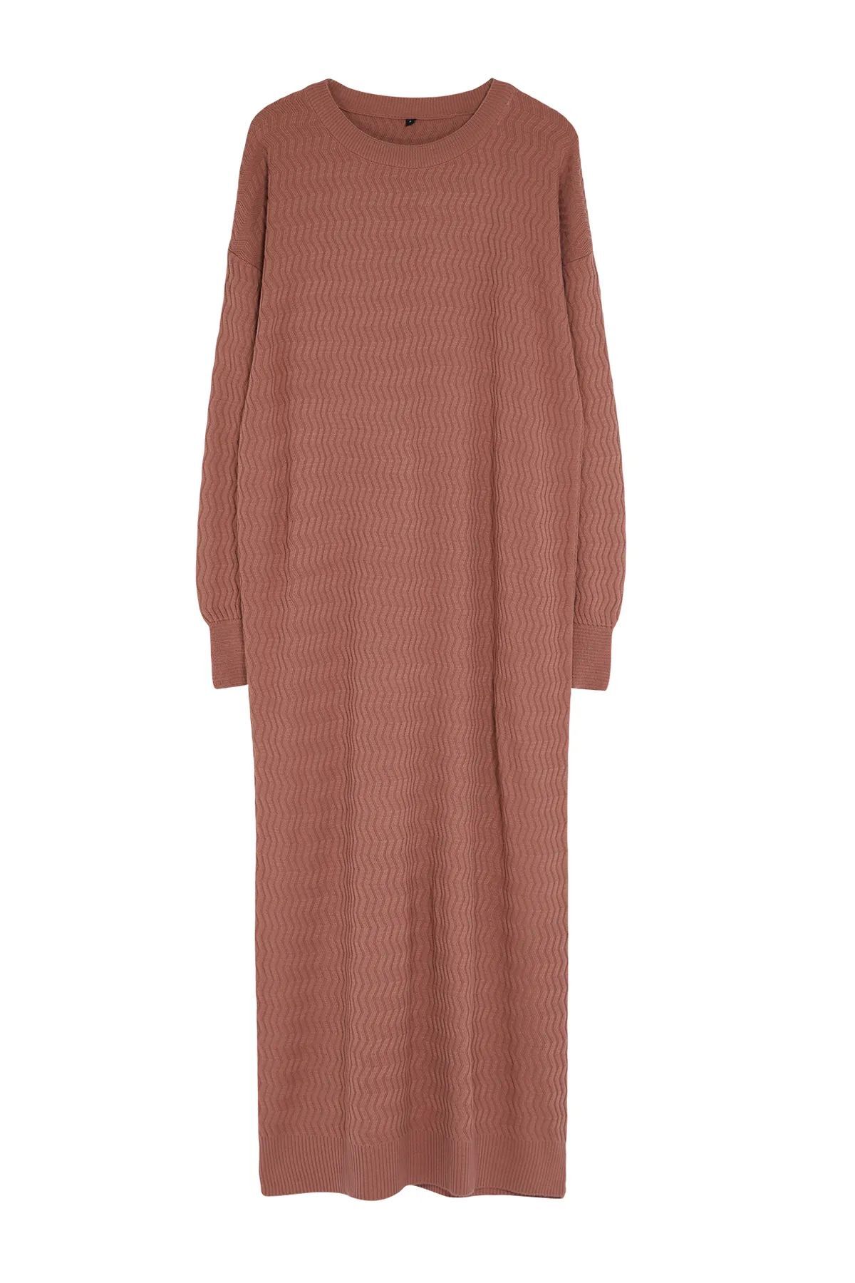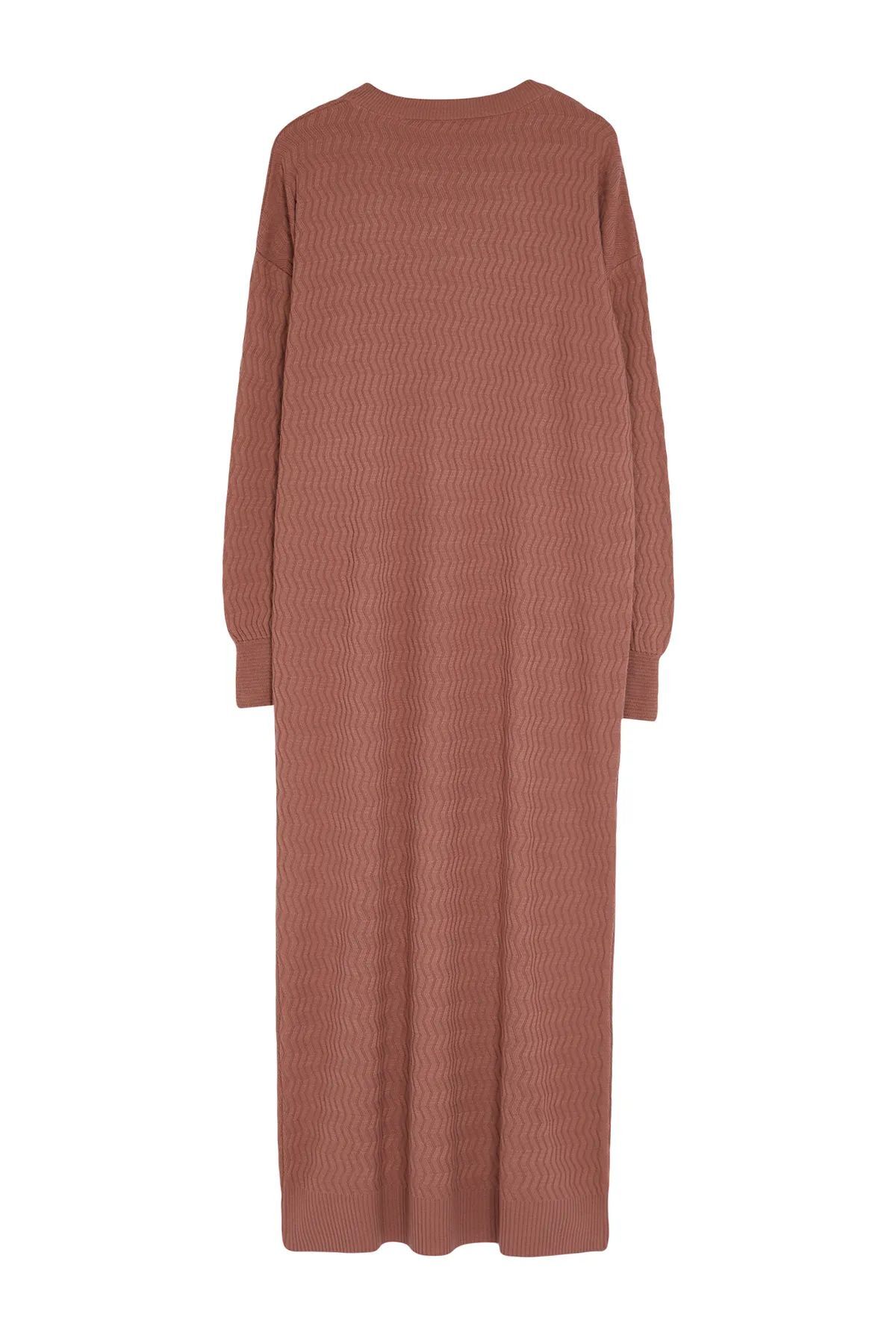 Розово-сухое трикотажное платье с самостоятельным рисунком TCTAW25EB00003