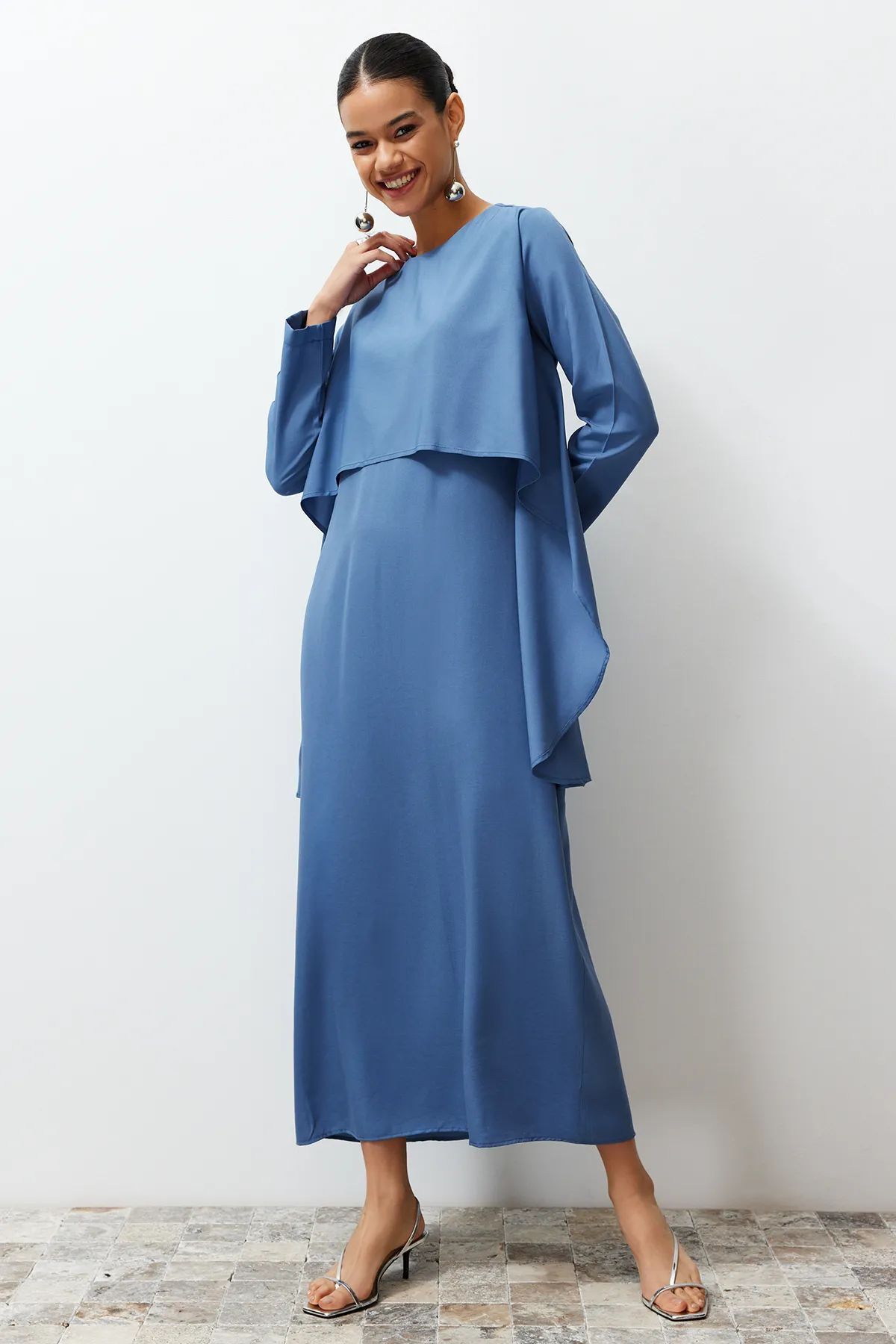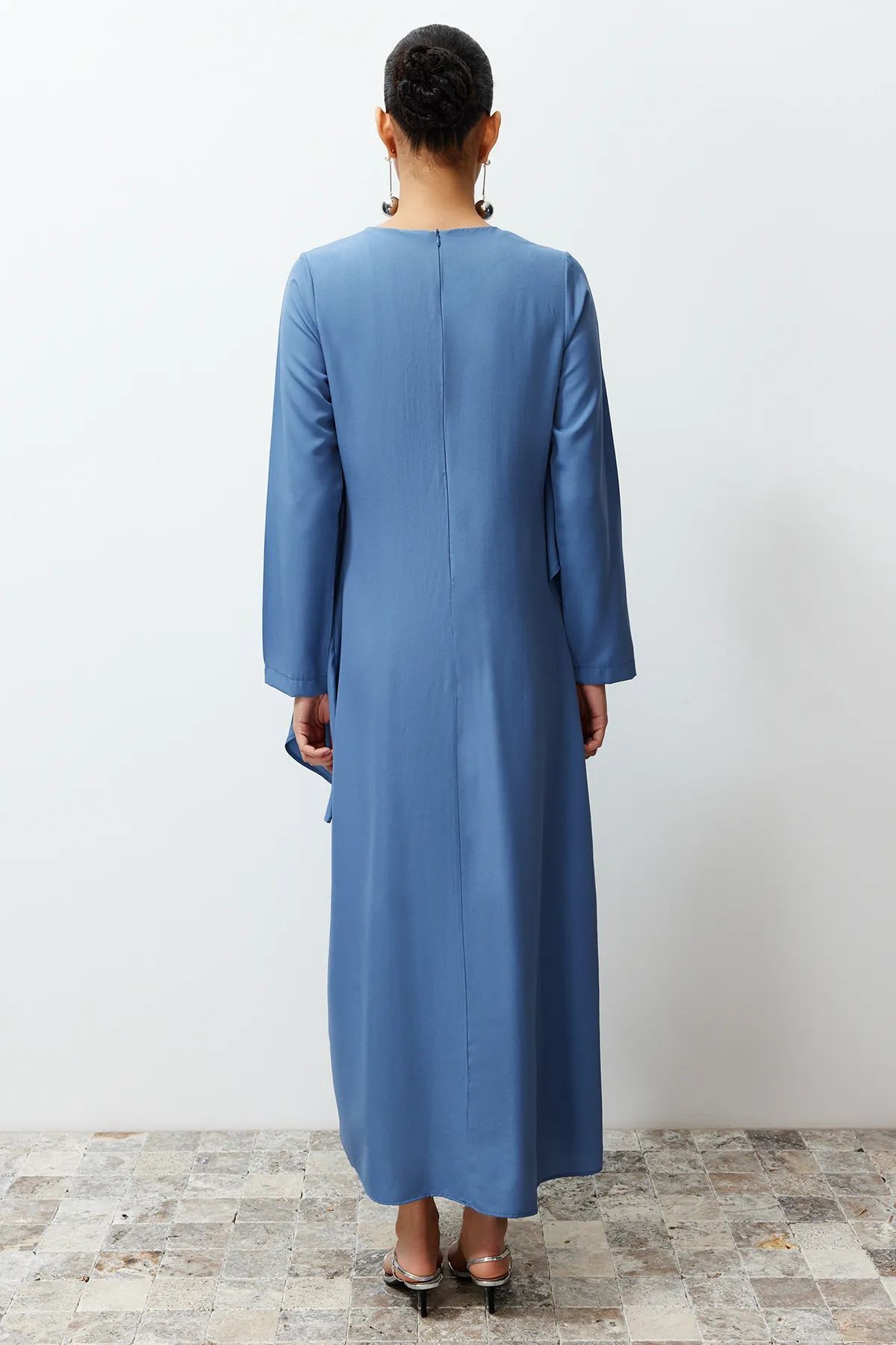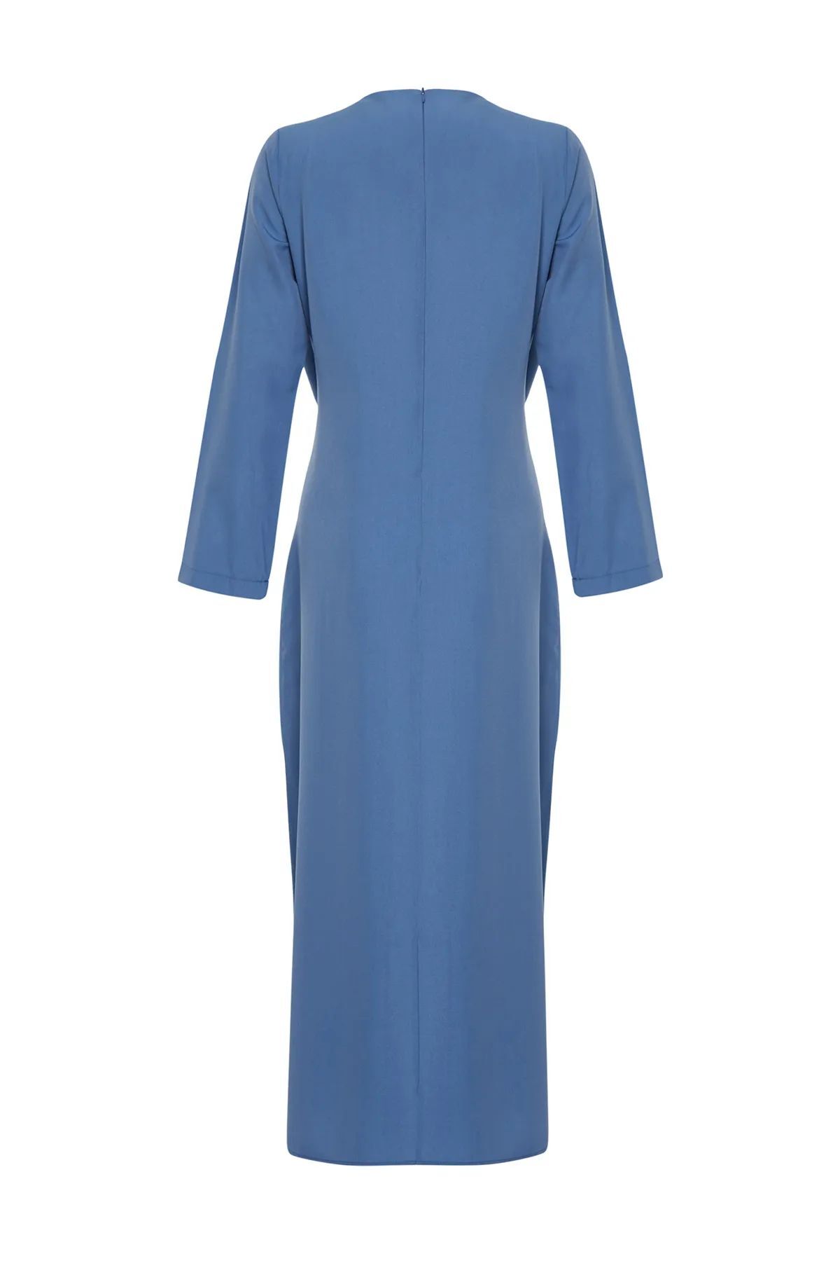Синее однотонное плетеное платье с деталями TCTSS24EB00146