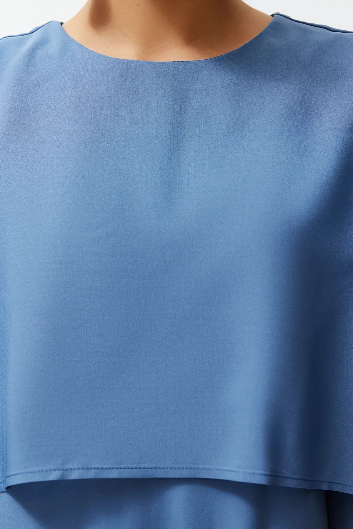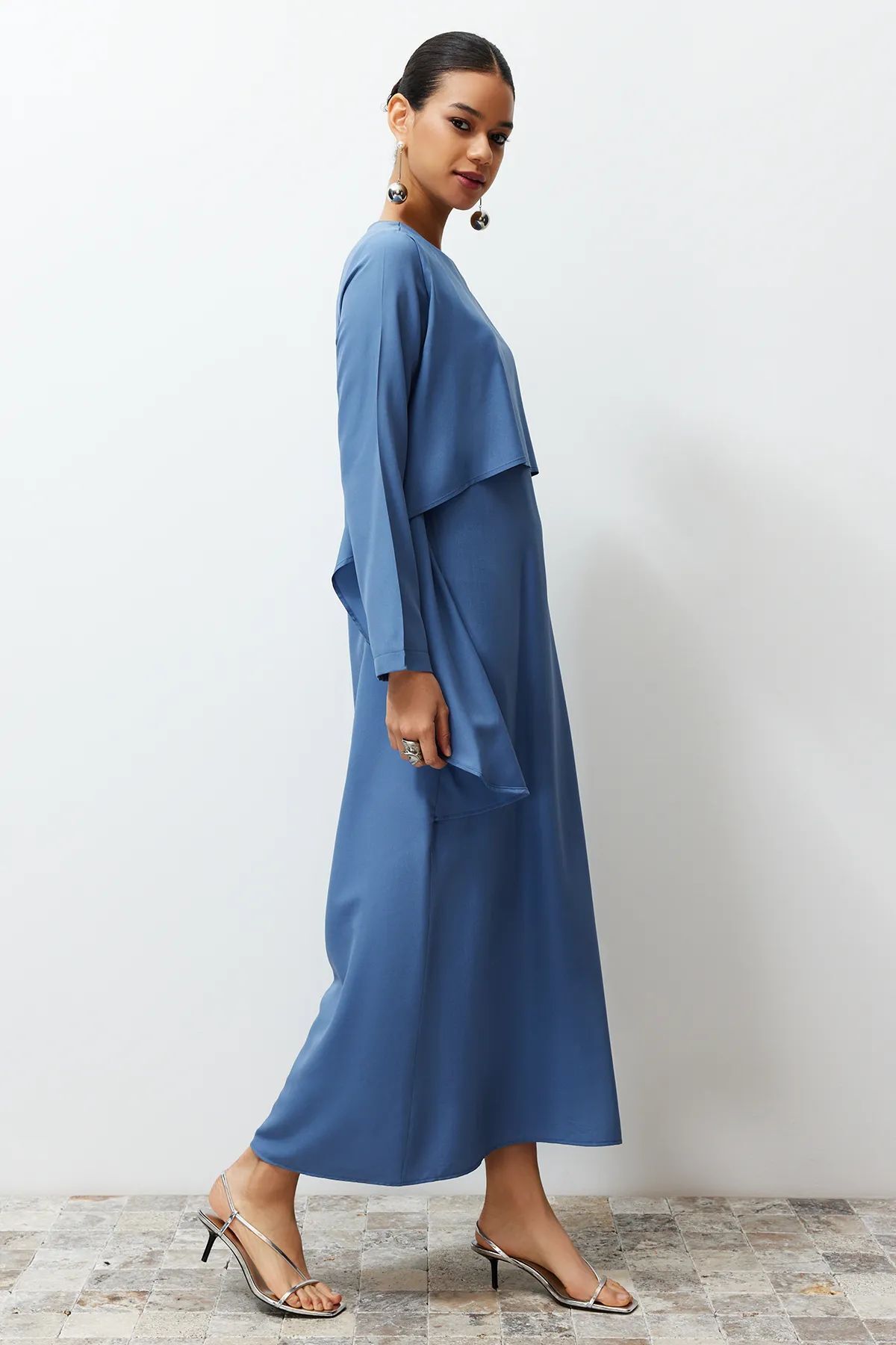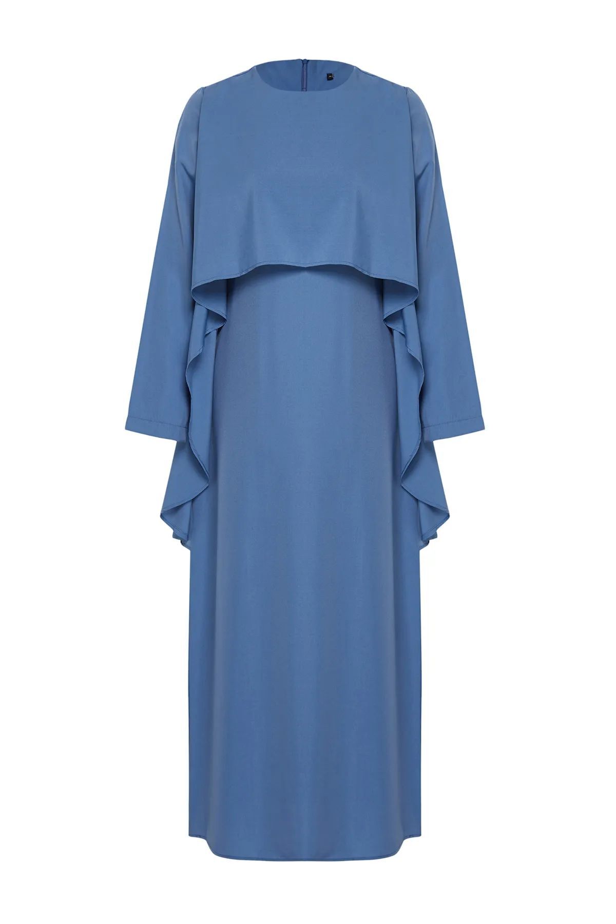 Синее однотонное плетеное платье с деталями TCTSS24EB00146