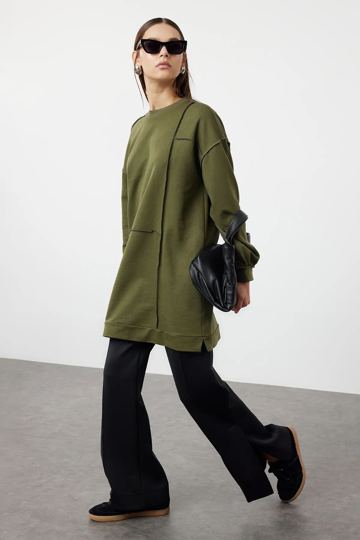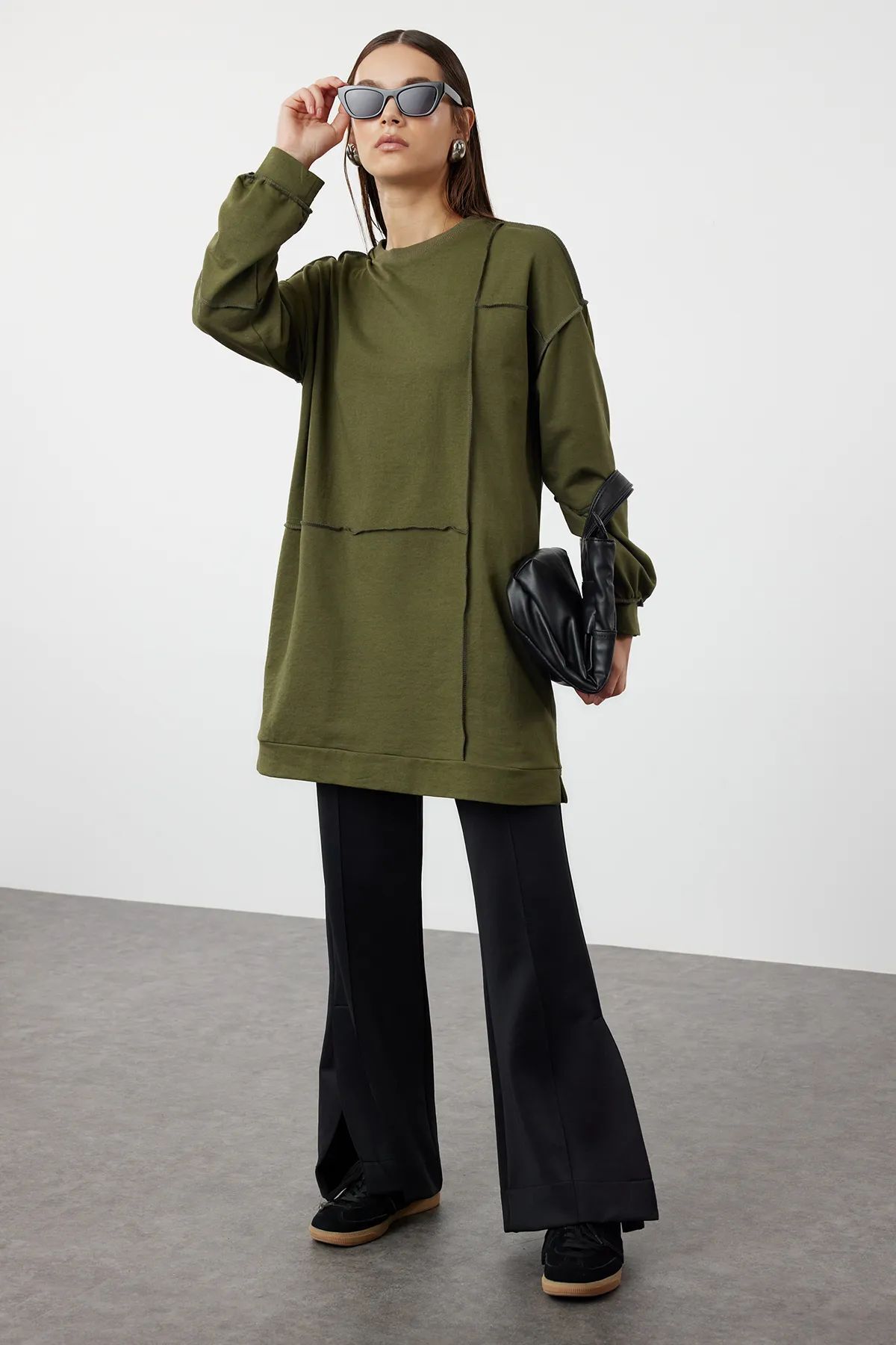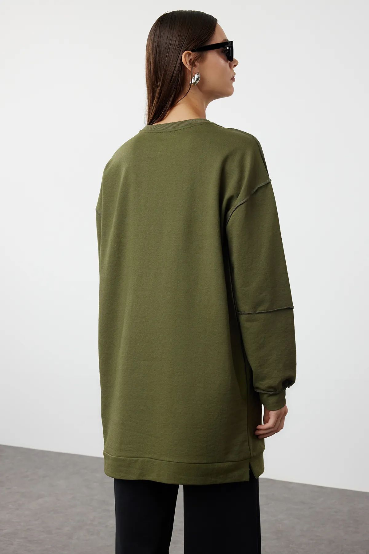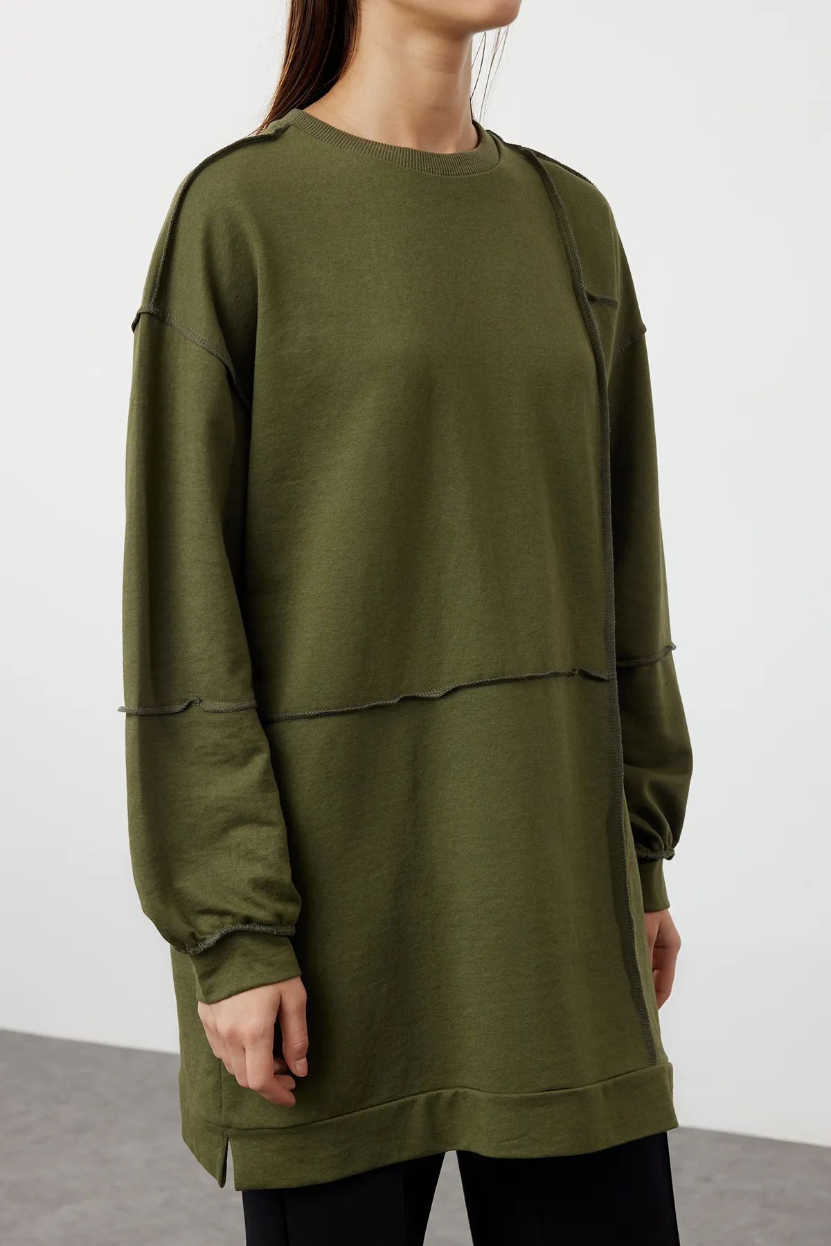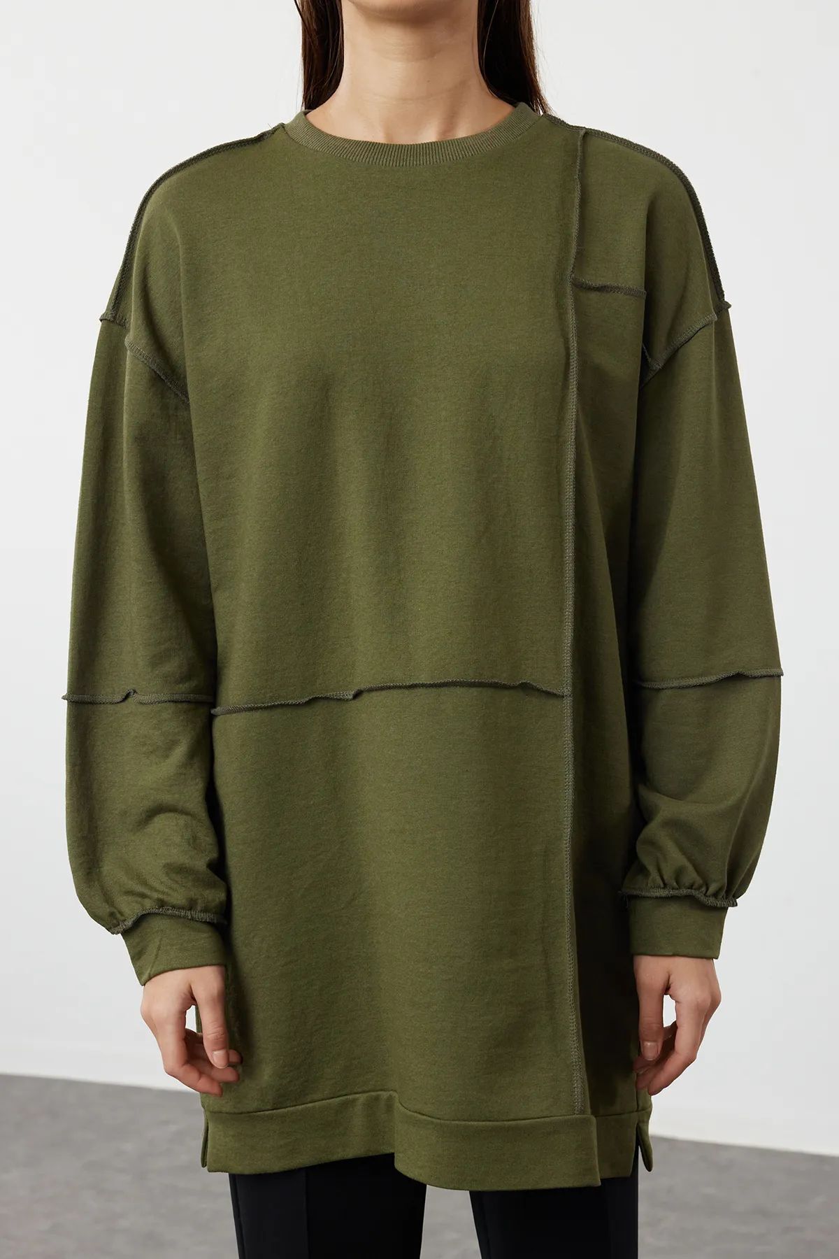 Трикотажная толстовка в рубчик цвета хаки большого размера TCTSS22TW0002