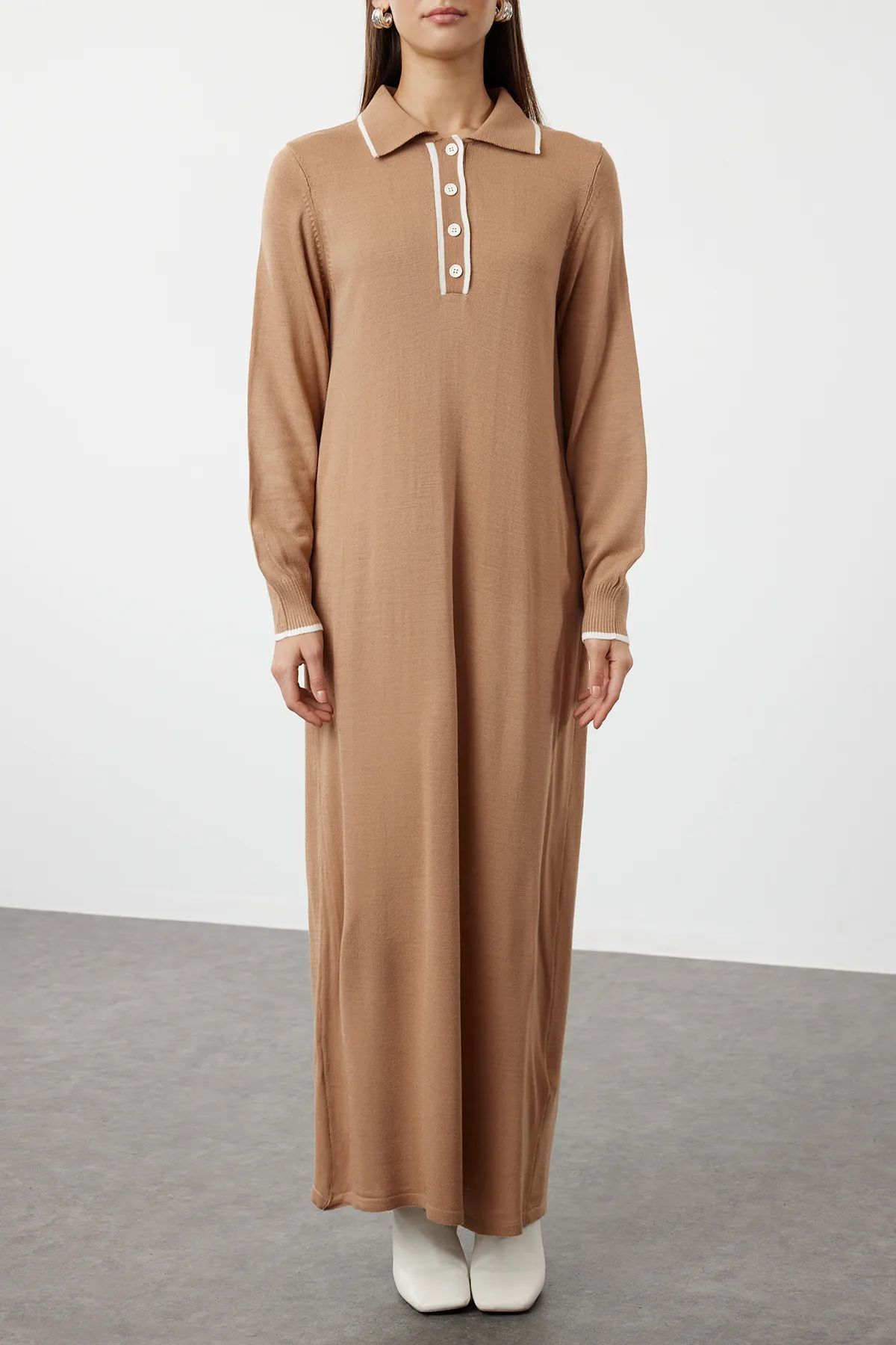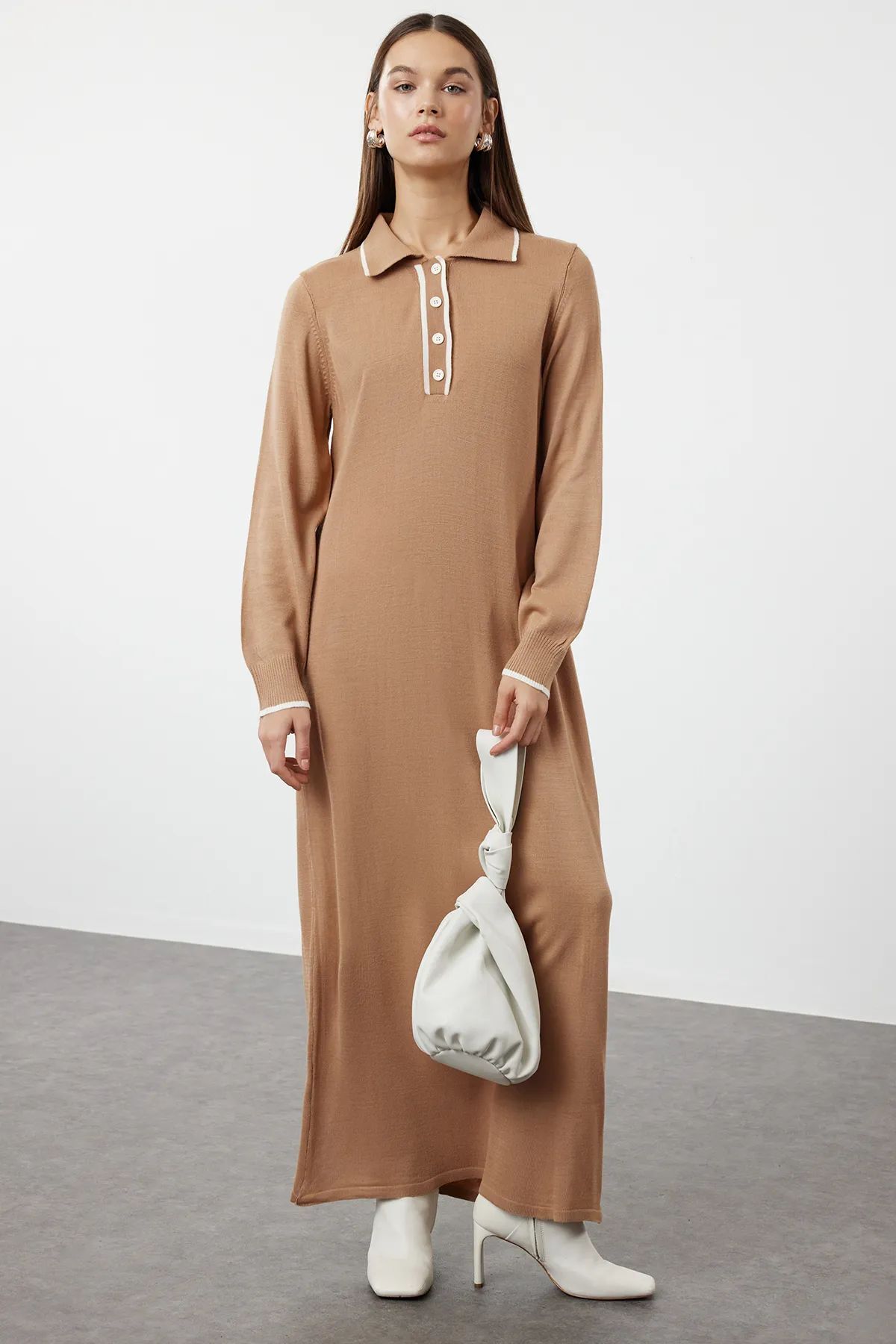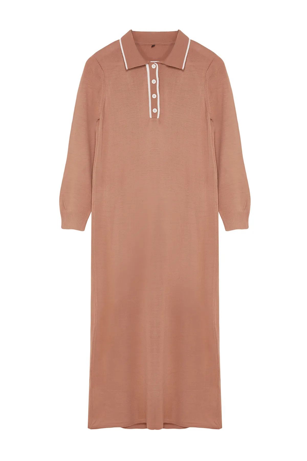 Трикотажное платье с воротником-поло с верблюжьим шатуном TCTAW25EB00011