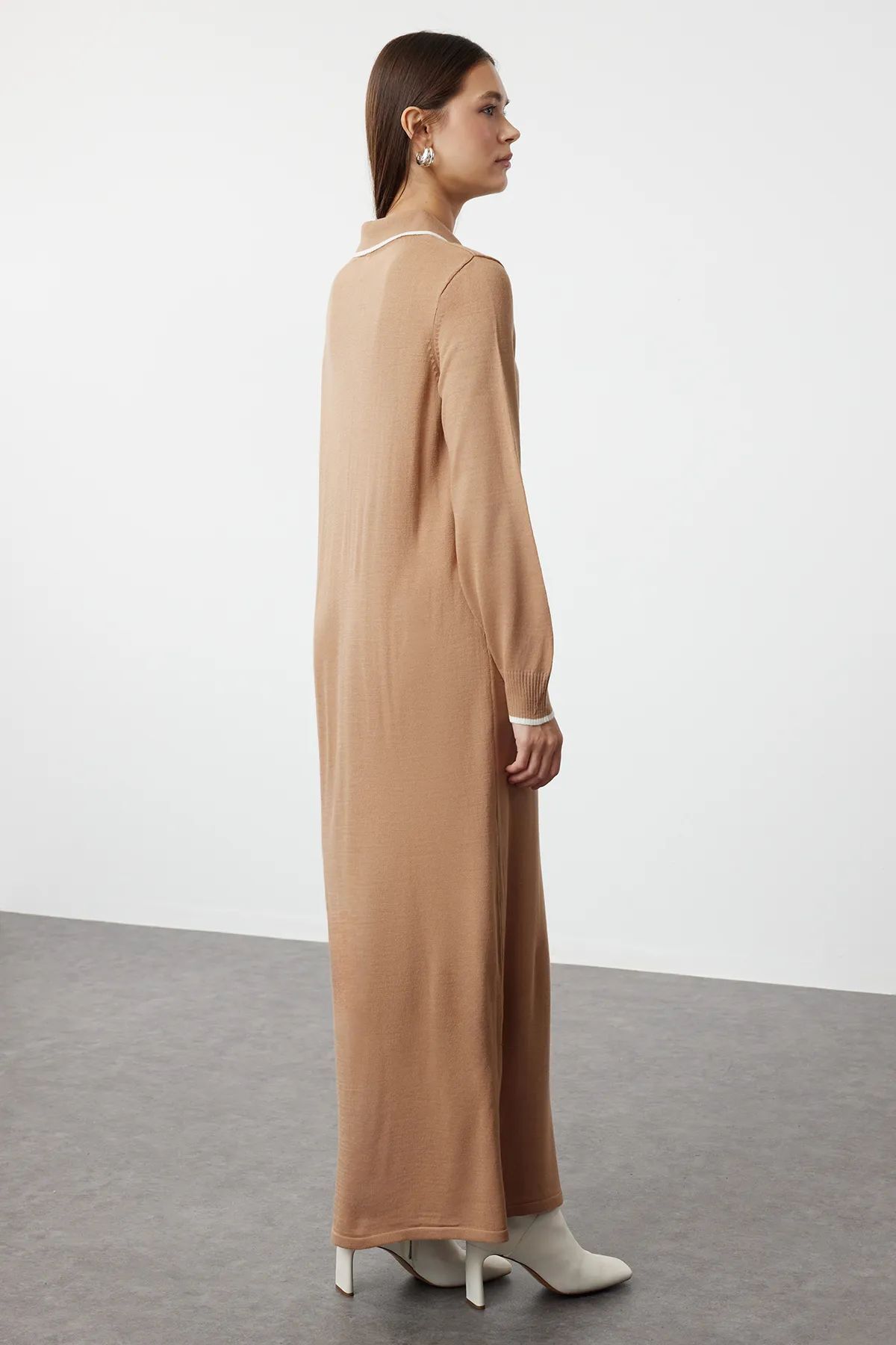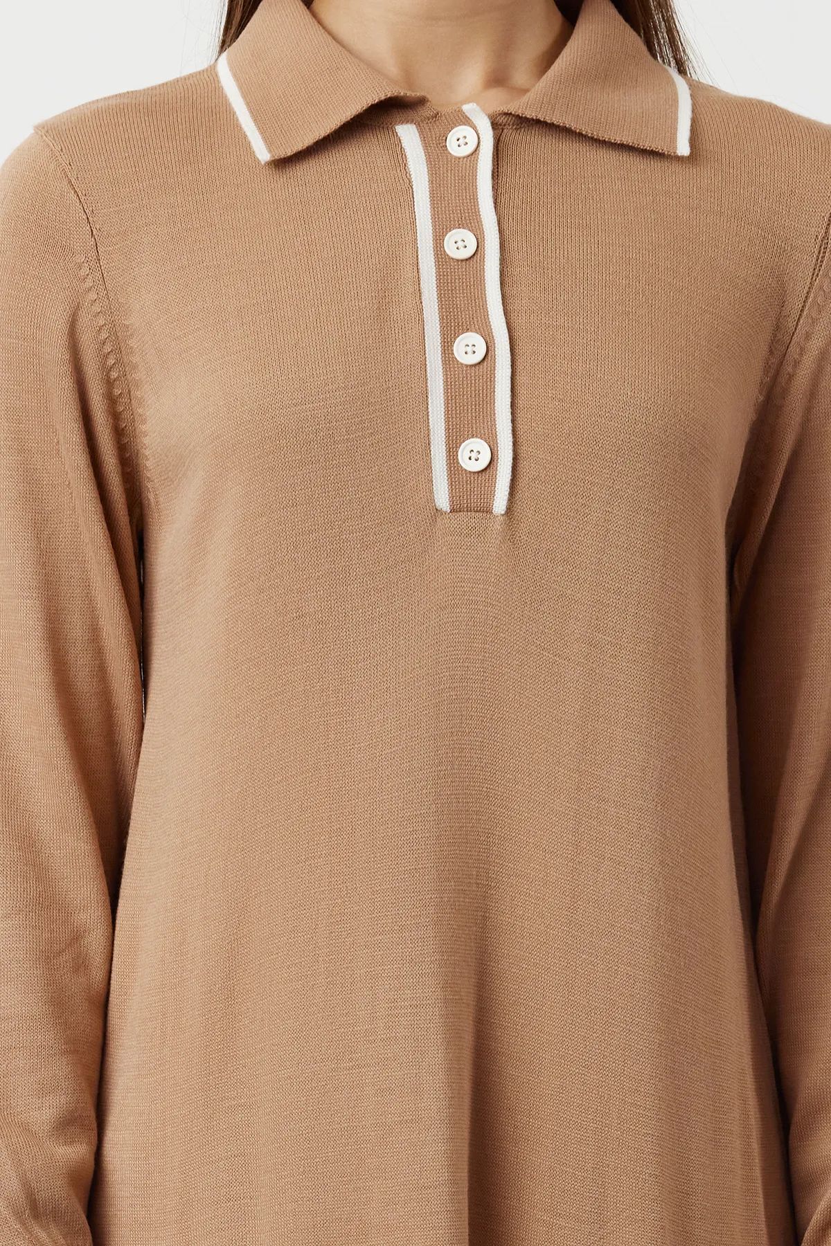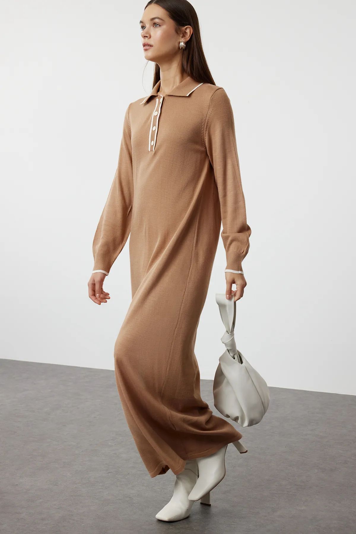 Трикотажное платье с воротником-поло с верблюжьим шатуном TCTAW25EB00011