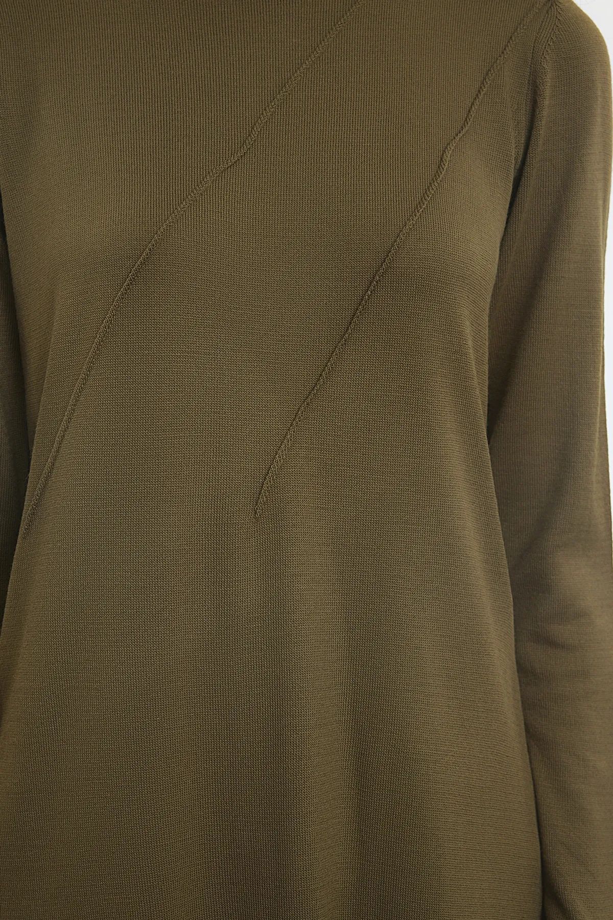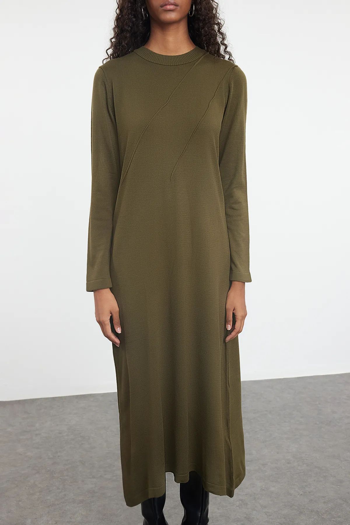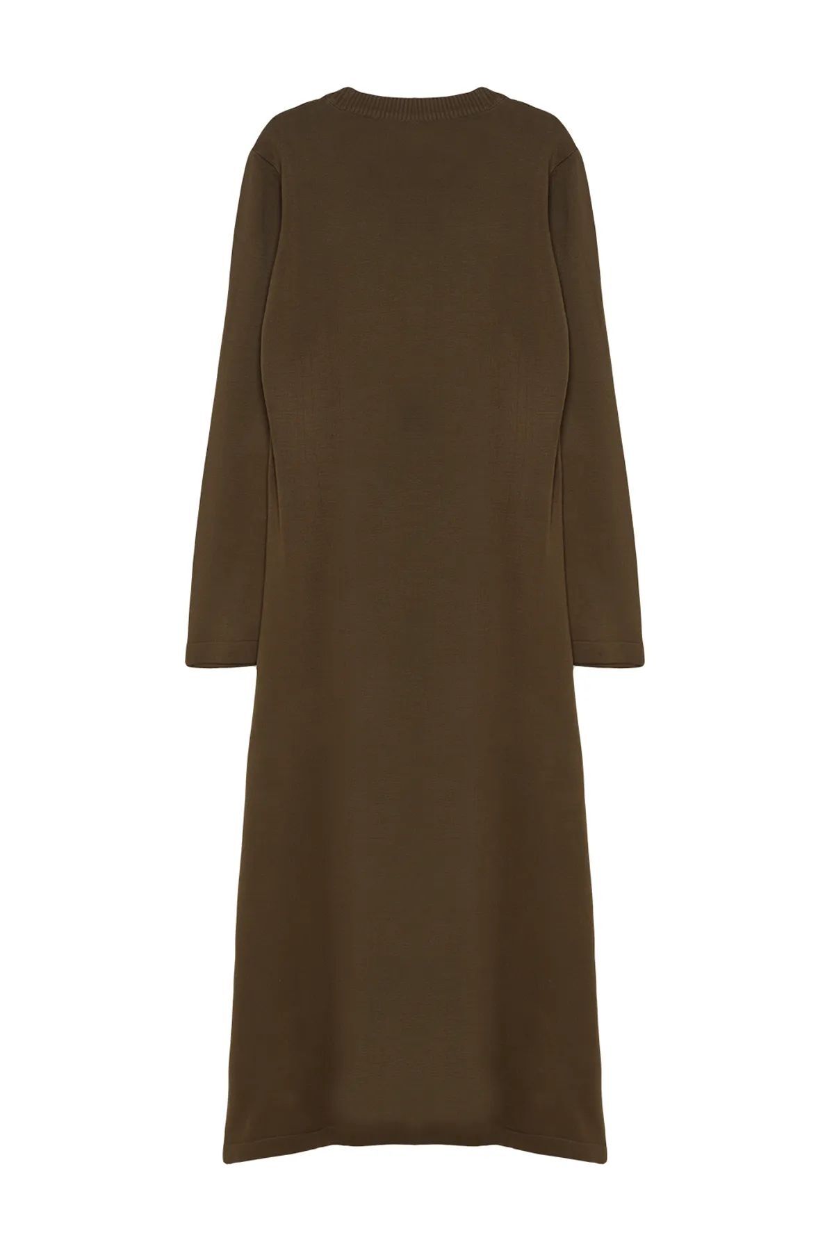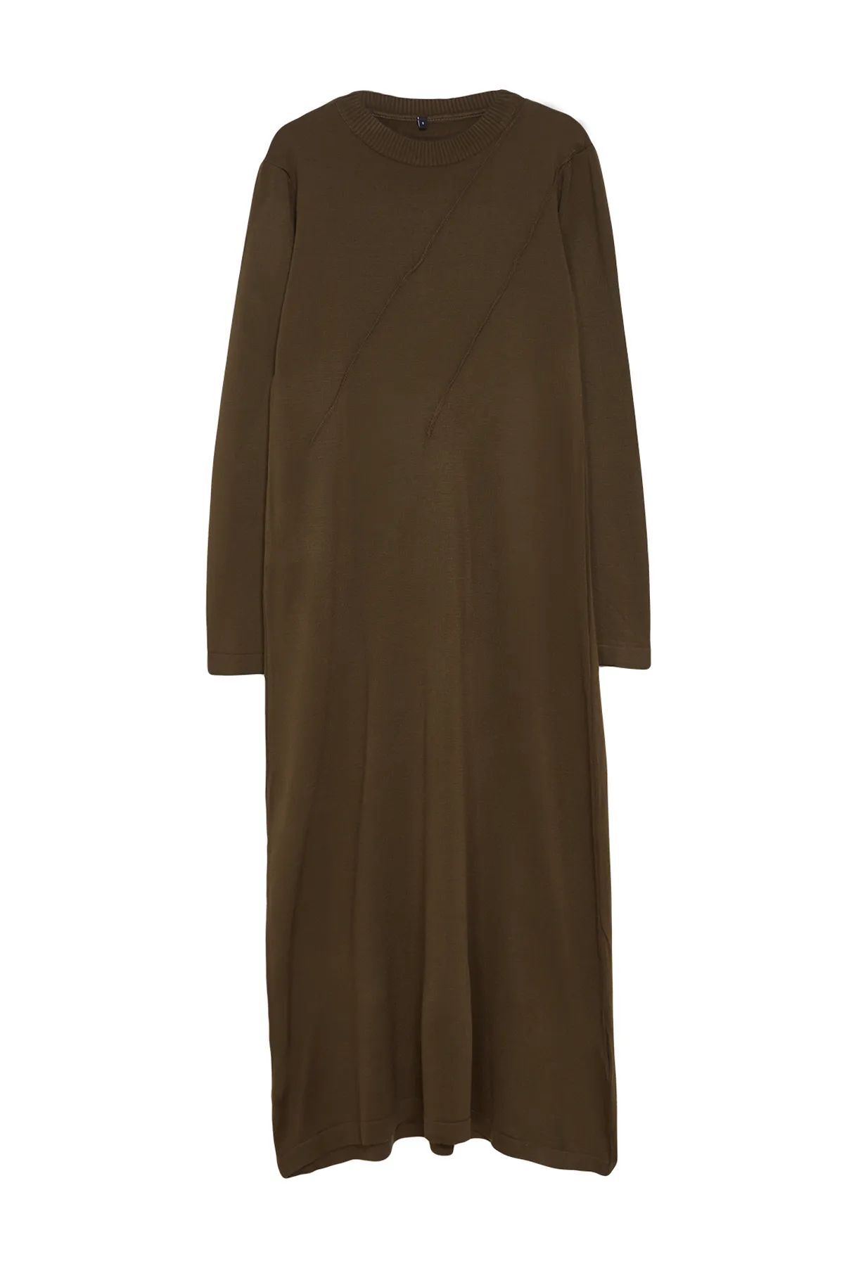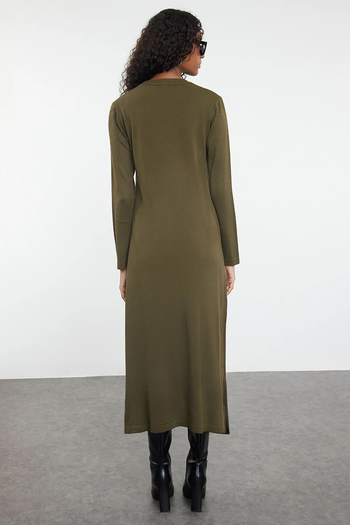 Трикотажное платье цвета хаки в рубчик с деталями TCTAW25EB00051